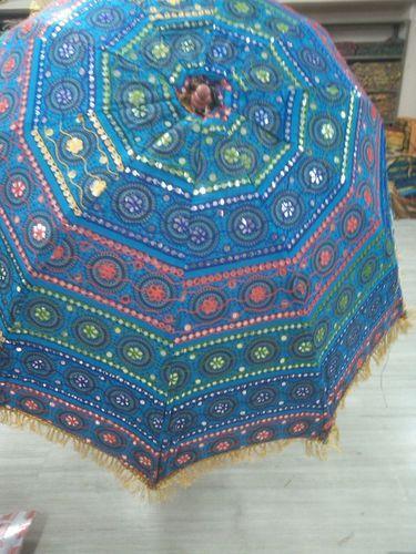 Traditional Indian cotton garden umbrellas, handcrafted by village artisans of Rajasthan, look amazingly attractive. These Rajasthani parasols are decorated with intricate hand-embroidery work by rural artisans.