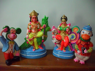 Krishnanagar clay dolls of rural Bengal are also extremely beautiful and brilliant art-pieces. These dolls are found in all great art-museums and art-galleries around the globe as priced collections. Worth exploring these dolls too for Navaratri Golu (Kolu)