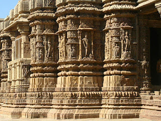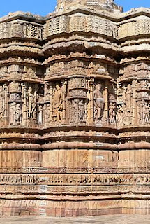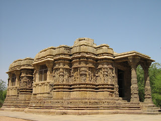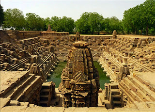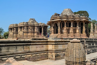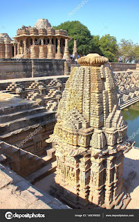 The Sun Temple in Modhera village is a Hindu temple dedicated to the Sun God Surya located in Mehsana district of Gujarat in India. It is situated on the banks of river Pushpavati.